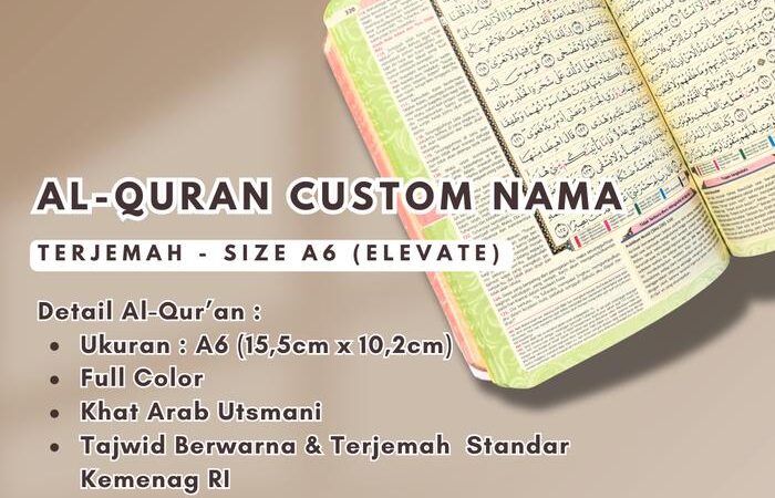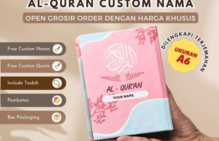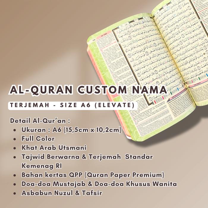 | Custom Nama & Quote | Tulis nama dan kutipan favorit Anda di sampul Al-Qur’an untuk kesan personal. |