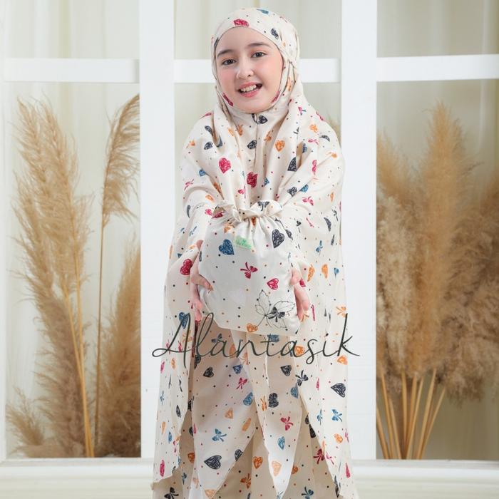 Temukan mukena spesial untuk putri Anda yang mulai beranjak remaja! Mukena Alantasik MK01 hadir dengan desain 2in1 yang praktis dan motif bunga pita yang lucu, cocok untuk menemani ibadah sehari-hari maupun untuk kegiatan travel. Dibuat dengan bahan katun micro premium pilihan yang menjamin kenyamanan maksimal.