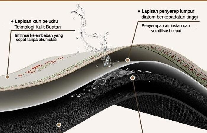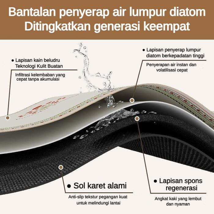 - Super Penyerap Air: Terbuat dari bahan diatom lumpur alami yang cepat menyerap air.