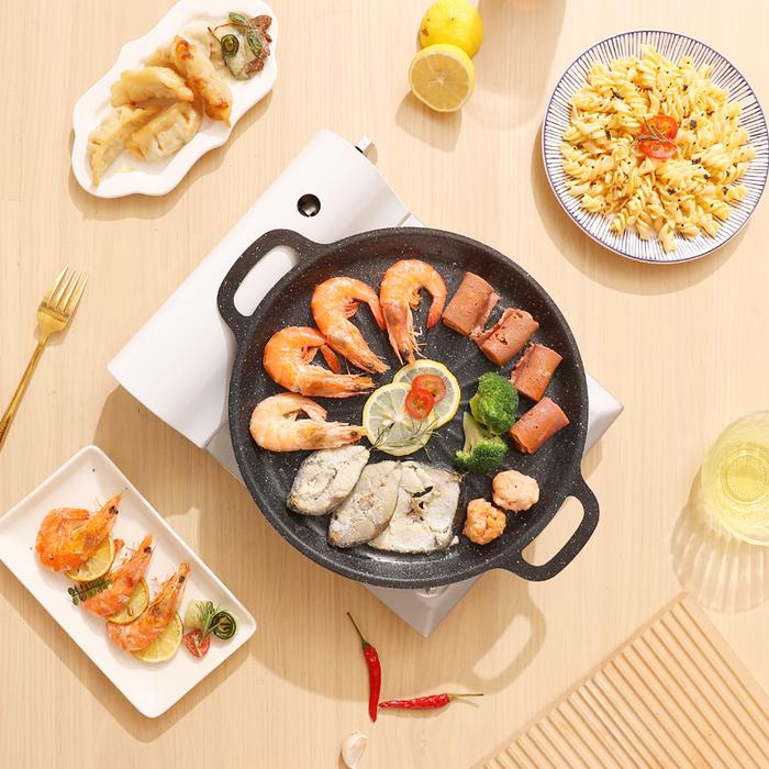 Nikmati acara memanggang yang lebih mudah, aman, dan lezat dengan Pan Grill 34 cm ini. Dilengkapi lapisan anti lengket dan distribusi panas yang merata, makanan matang sempurna tanpa menempel. Cocok untuk berbagai masakan, mulai dari BBQ hingga tumisan, dengan asap minimal sehingga nyaman digunakan di dapur tertutup.