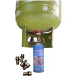 - Kaleng Gas Portable / Botol Robinson: Kaleng bertekanan berukuran kecil yang dapat diisi ulang, biasa digunakan untuk kompor portable saat camping, kegiatan outdoor, atau keperluan darurat.