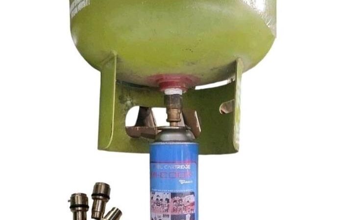 - Proses Pengisian: Tekan ujung adaptor ke katup kaleng gas portable hingga tersambung dengan baik.