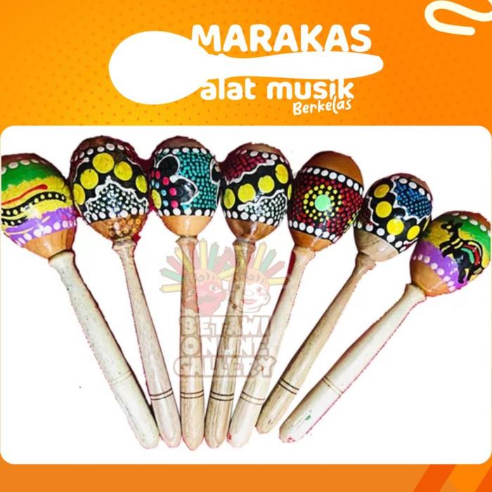 • Marakas: Adalah alat musik perkusi yang berasal dari Amerika Latin, sering digunakan dalam musik salsa, rumba, dan musik rakyat. Bentuk tradisionalnya terbuat dari labu kering yang berongga dan diisi dengan biji-bijian atau manik-manik. Ketika digoyangkan, alat ini menghasilkan suara gemerincing yang khas.