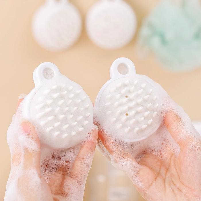 | Sisir Silikon | Bulu silikon tebal dan lembut merangsang sirkulasi darah, membersihkan, dan mengelupas sel kulit mati. |