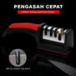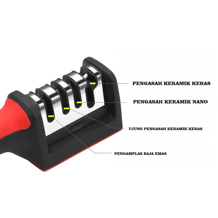 Cukup tarik pisau atau gunting melalui slot yang sesuai sebanyak 3-5 kali dengan tekanan ringan. Desain ergonomis dan material berkualitas seperti stainless steel, alloy tungsten, dan keramik ganda menjamin keamanan serta keawetan alat.