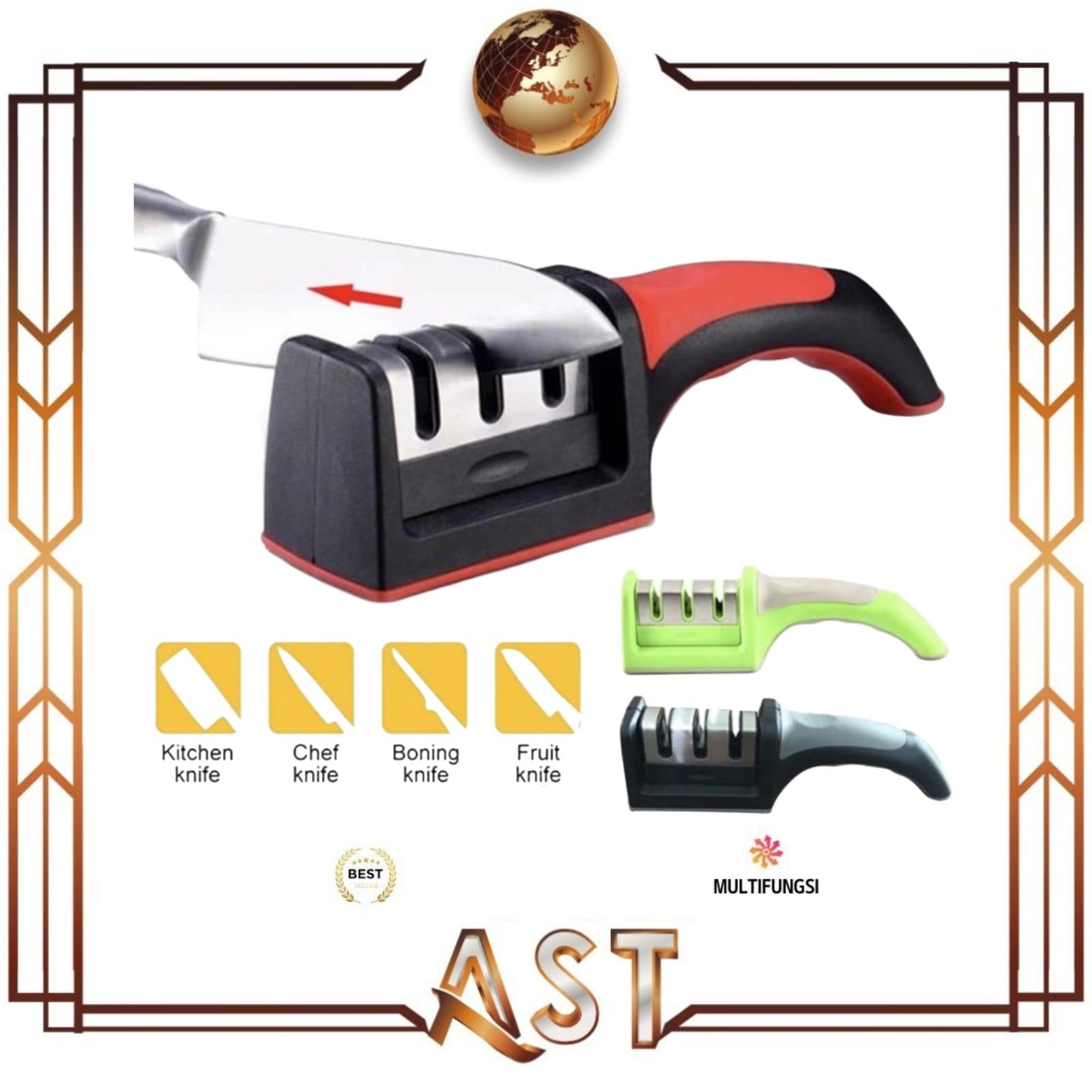 Fungsi UtamaMenajamkan berbagai jenis pisau dengan sistem dua tahap: pengasahan kasar dan halus.