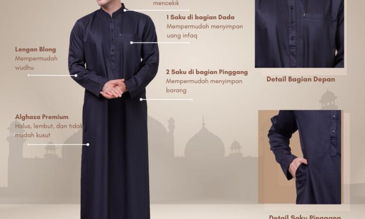 - Lengan polos tanpa kancing (praktis saat wudhu)