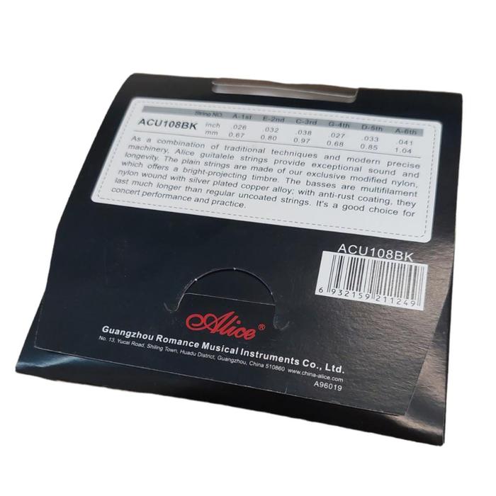 Senar gitarlele berkualitas tinggi dari Alice dirancang untuk memberikan suara yang jernih, harmonis, dan nyaman dimainkan. Cocok untuk gitarlele ukuran 1/4 atau ukuran kecil lainnya, senar ini terbuat dari bahan nylon premium dengan lapisan hitam elegan yang tahan lama. Ideal untuk latihan sehari-hari, pertunjukan, atau rekaman di studio.