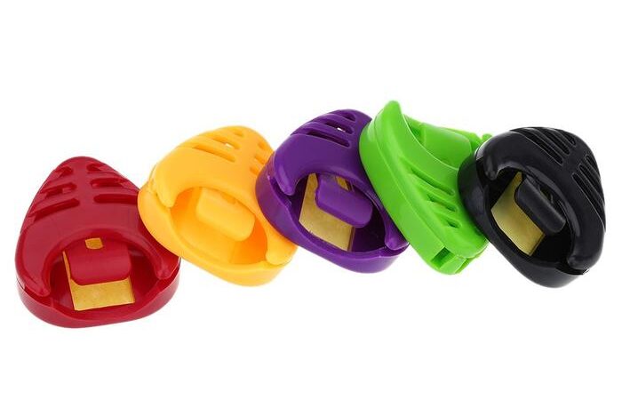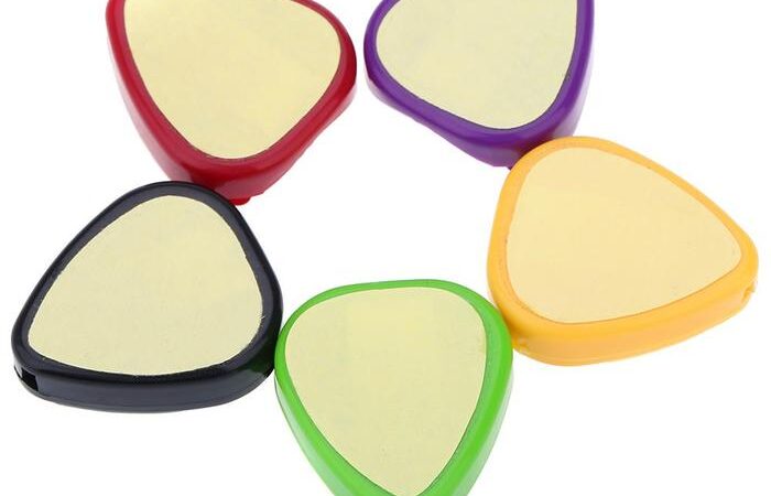 - Pick: Juga dikenal sebagai plektrum, adalah alat kecil berbentuk segitiga yang terbuat dari plastik atau bahan lainnya untuk memetik senar gitar.