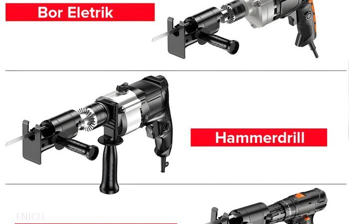 - Adaptor Bor: Sebuah alat perantara (attachment) yang dipasang pada chuck bor untuk mengubah fungsi bor menjadi perkakas lain, dalam hal ini menjadi gergaji.