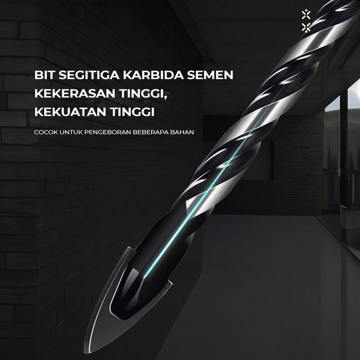 Shank atau tangkainya yang berbentuk segitiga memberikan cengkraman yang sangat kuat pada chuck bor, menghilangkan risiko slip dan meningkatkan keamanan selama penggunaan. Pola sekrup berbentuk U (U-Spiral) memastikan proses pembuangan serbuk material berlangsung cepat dan efisien, sehingga pengeboran menjadi lebih mudah, lancar, dan tidak tersendat.