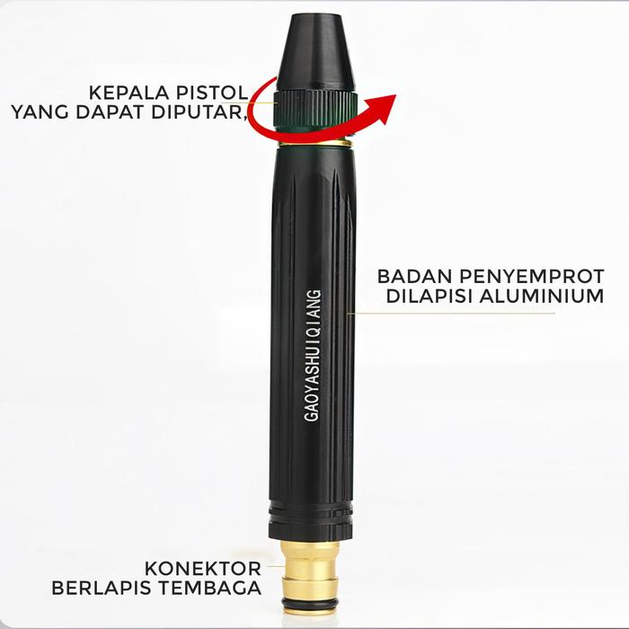 Dibuat dari material kombinasi Kuningan, Metal, dan Plastik ABS berkualitas premium, nozzle ini menjamin ketahanan dan umur pakai yang panjang. Dengan ukuran ± 16 x 2.5 cm, nozzle ini memiliki jarak semprotan mencapai hingga 10 meter, memastikan Anda dapat menjangkau area yang sulit tanpa harus memindahkan mesin.