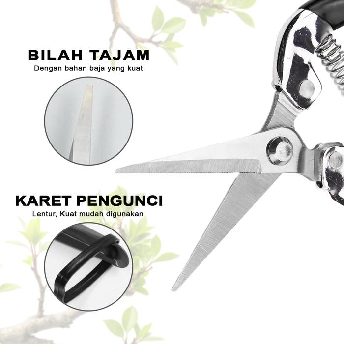 | Fungsi & Aplikasi | Ideal untuk memangkas semak, bunga, tanaman merambat, ranting pohon, serta berbagai keperluan berkebun dan DIY di rumah. |