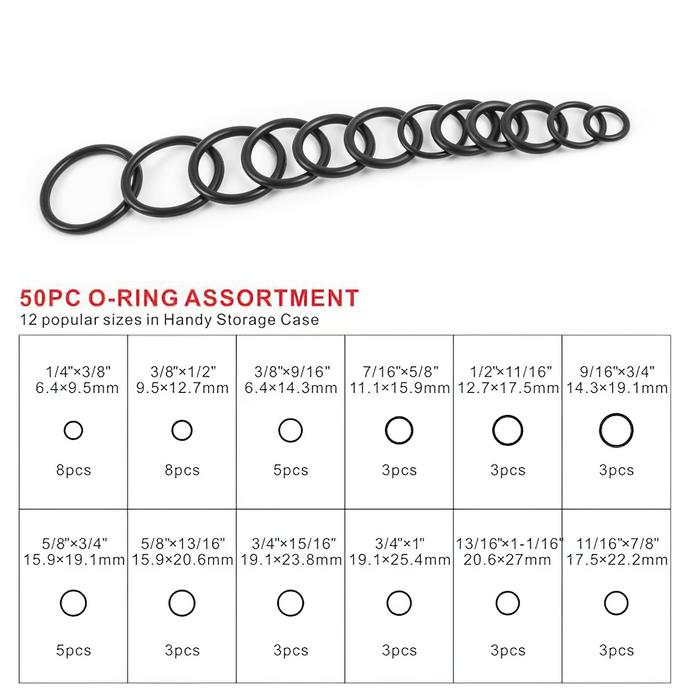 Penuhi semua kebutuhan sealing Anda dengan set O-ring komprehensif dari Allefix. Berisi 50 kemasan berbeda dengan total 225 buah, set ini menyediakan 18 ukuran bervariasi untuk menangani berbagai situasi perbaikan dan pemeliharaan. Dibuat dari material karet berkualitas tinggi, O-ring ini menjamin daya tahan luar biasa, ketahanan terhadap korosi, serta stabilitas dalam menahan suhu tinggi.