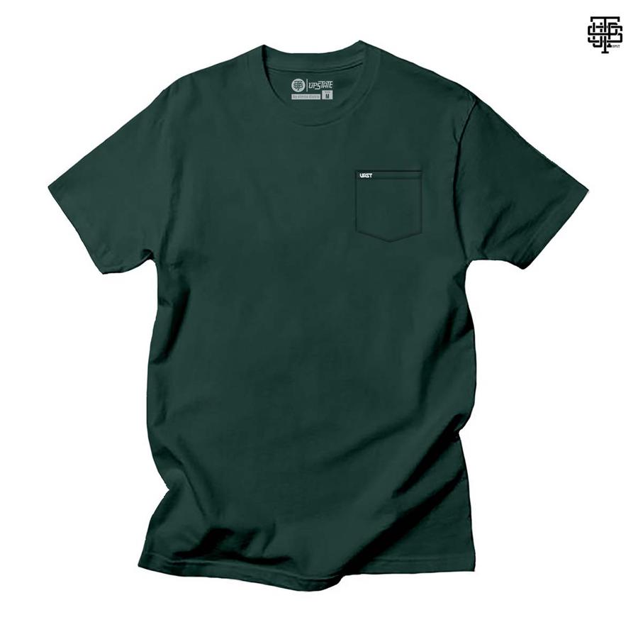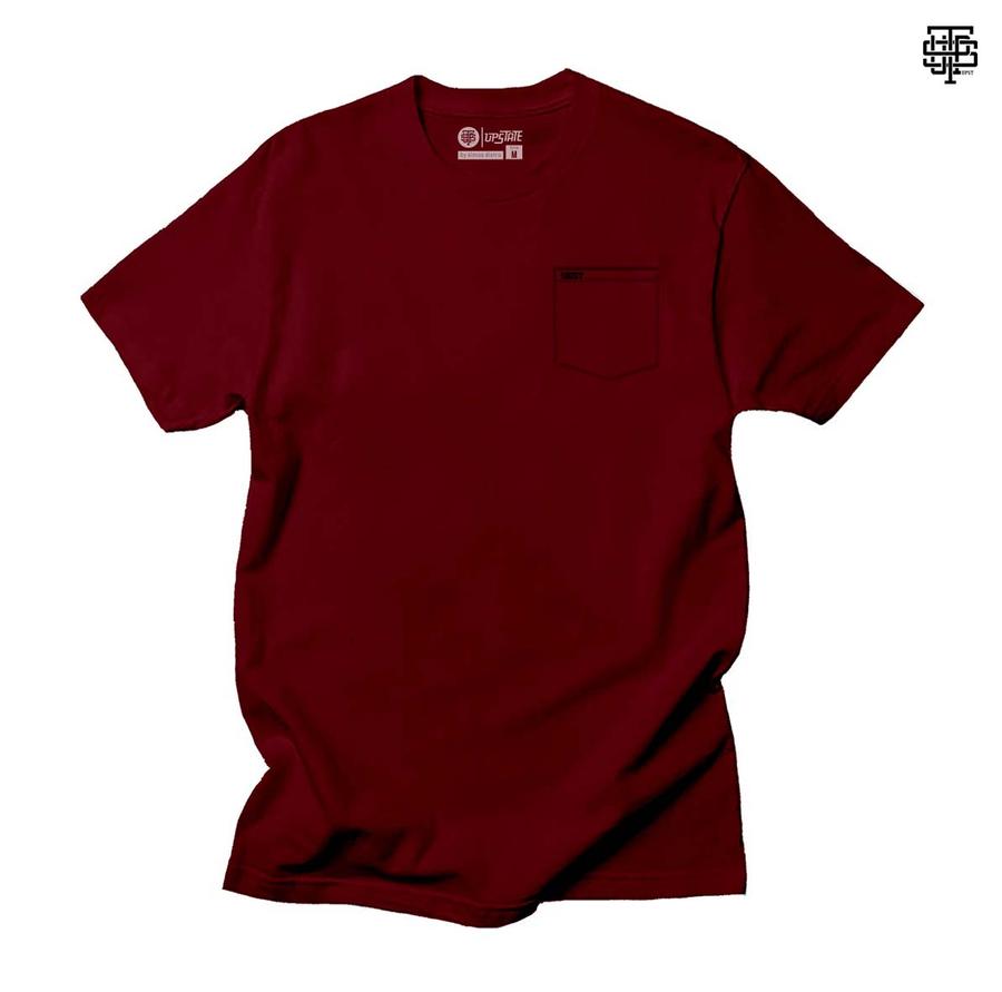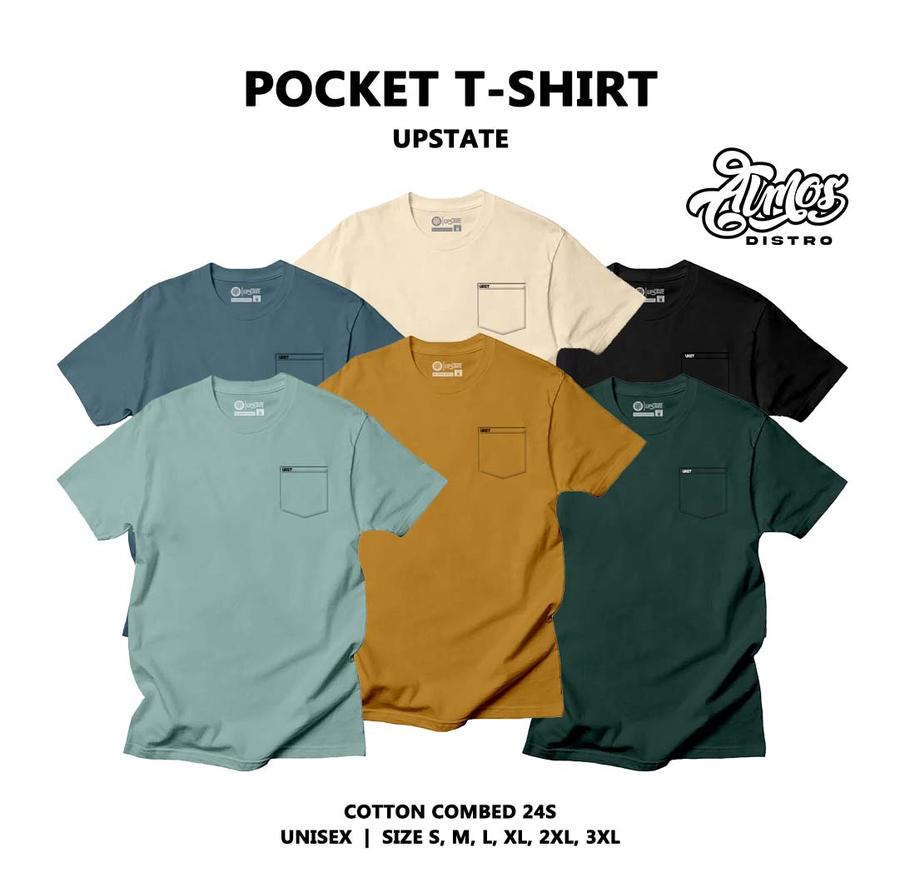 | Desain | Oblong lengan pendek + saku depan kiri dengan logo bordir “UPSTATE” eksklusif. |
