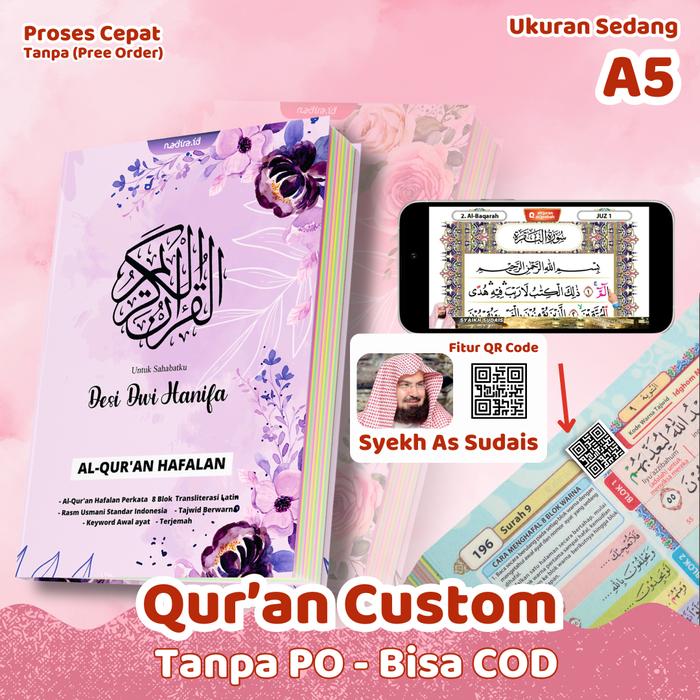 Hadirkan kemudahan dan keistimewaan dalam setiap lantunan ayat dengan Alquran Custom Nama By Nadira. Kini, Anda dapat memiliki Alquran pribadi yang dicetak khusus dengan nama yang Anda pilih, menjadikan ibadah dan studi Islami lebih personal dan bermakna.