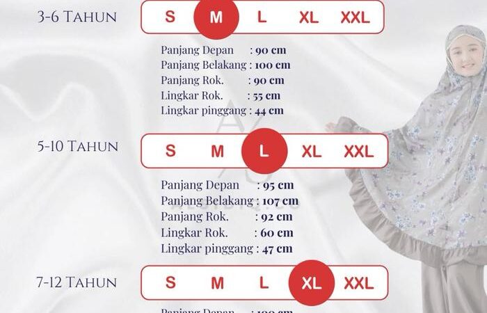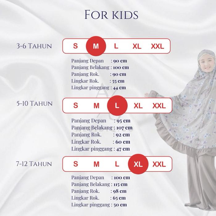 | XL | 95 cm / 105 cm | 95 cm x 65 cm | 7 – 12 Tahun |