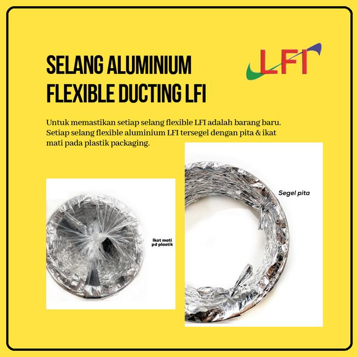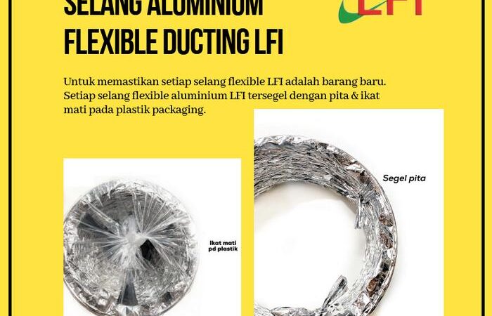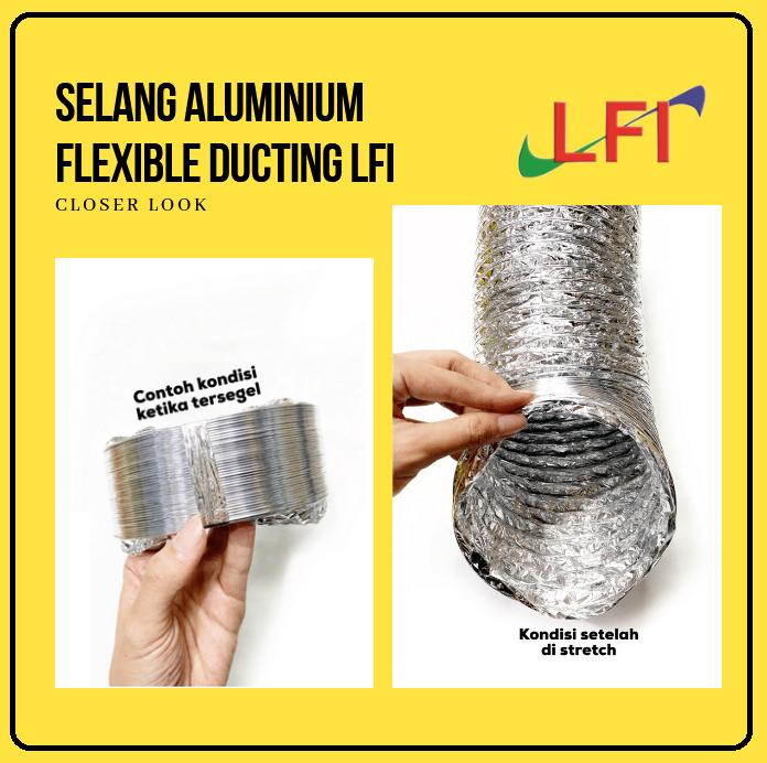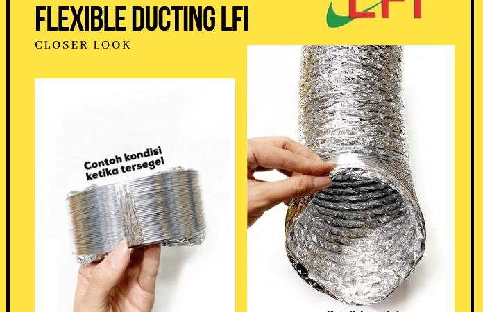 - Flexible Ducting: Selang fleksibel yang berfungsi sebagai saluran udara (ducting) untuk mengalirkan udara dari satu titik ke titik lain. Terbuat dari material aluminium yang dilengkapi kawat spiral agar mudah dibentuk dan dipasang.