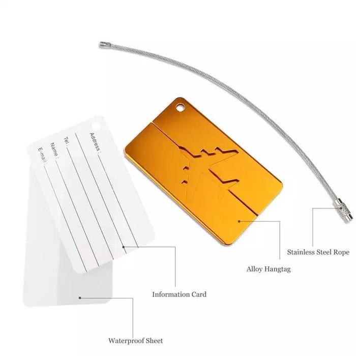 Tingkatkan pengalaman perjalanan Anda dengan Tag Label Koper berbentuk pesawat yang terbuat dari material aluminium kokoh. Dengan dimensi 7.5 x 4.5 cm, tag ini memberikan ruang yang cukup untuk menulis identitas atau menempelkan stiker unik. Tali kabel baja (wire rope) sepanjang 17 cm memastikan pengikatan yang kuat dan aman ke berbagai jenis koper, dari hard case hingga soft bag, tanpa khawatir terlepas.