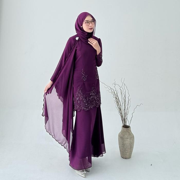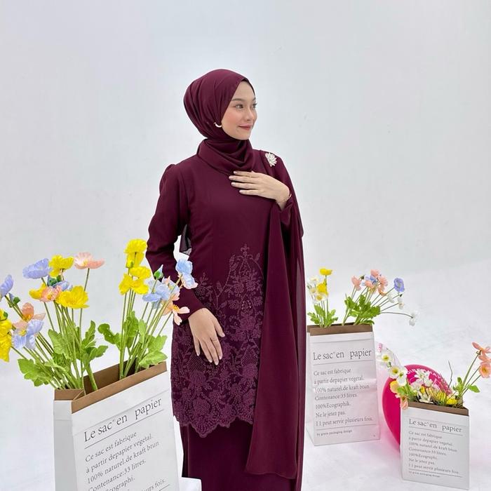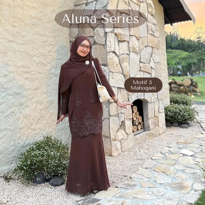 Aluna One Set adalah busana kurung modern dengan desain elegan dari koleksi Malay Series oleh Sabyyha.id. Tersedia dalam setelan atasan dan bawahan (ready stock), dengan pilihan pashmina atau pashmina bordir yang dijual terpisah.