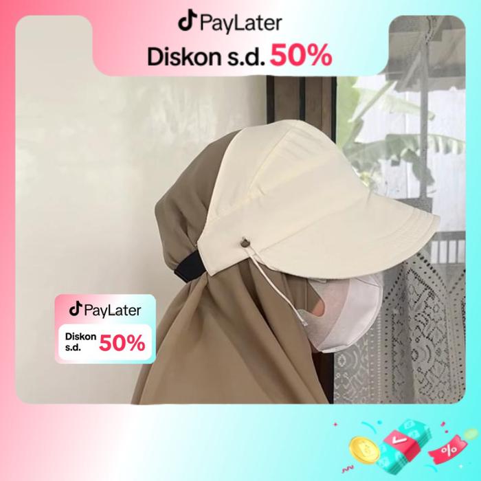 Fitur unggulannya adalah dua pengait masker yang terletak di kedua sisi belakang topi. Pengait ini memungkinkan Anda dengan mudah mengaitkan tali masker, sehingga mencegah iritasi pada telinga dan membuat pemakaian masker menjadi jauh lebih nyaman, terutama saat beraktivitas lama di luar ruangan. Topi ini juga dilengkapi visor selebar 8.7cm yang efektif melindungi wajah dari sinar UV.