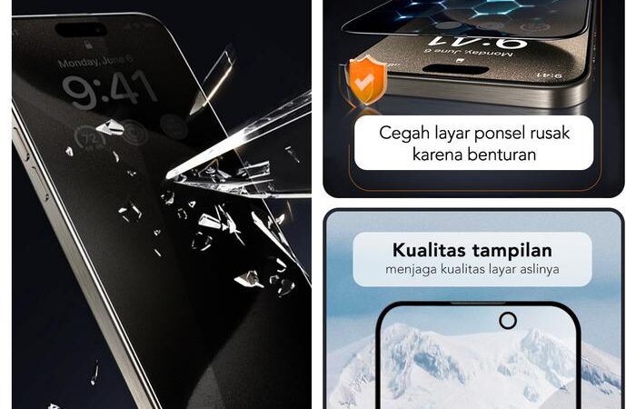 | Perlindungan Tambahan | Anti-Shattered (tahan pecah), Advance Adhesive Silicon (perekat kuat) |