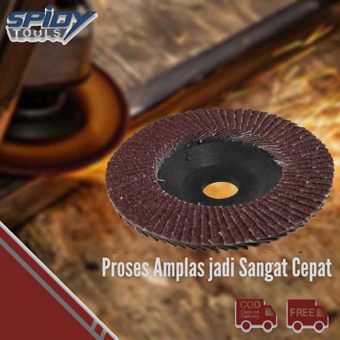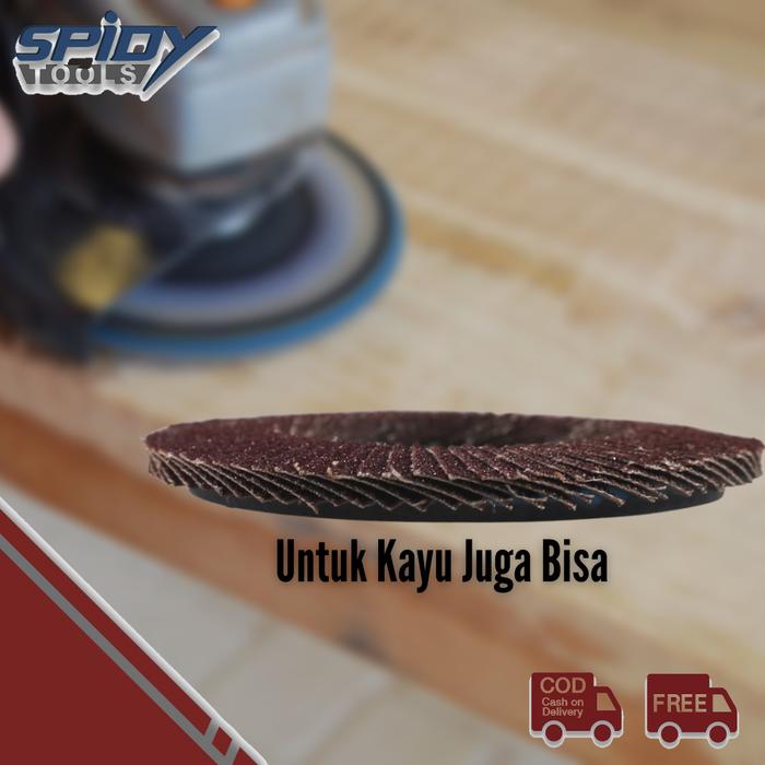 - Flap Disc (Amplas Susun): Sebuah alat abrasif yang terdiri dari banyak lapisan amplas kecil yang disusun melingkar, digunakan dengan mesin gerinda untuk mengamplas dan menghaluskan permukaan.