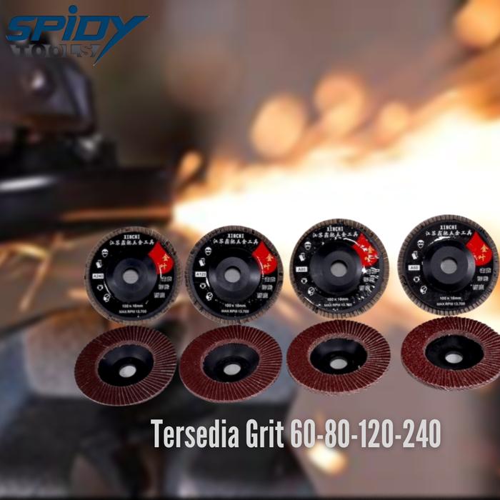 Amplas Susun Xinchi 4″ Flap Disc 100x16mm – Isi 10pcs per Blister