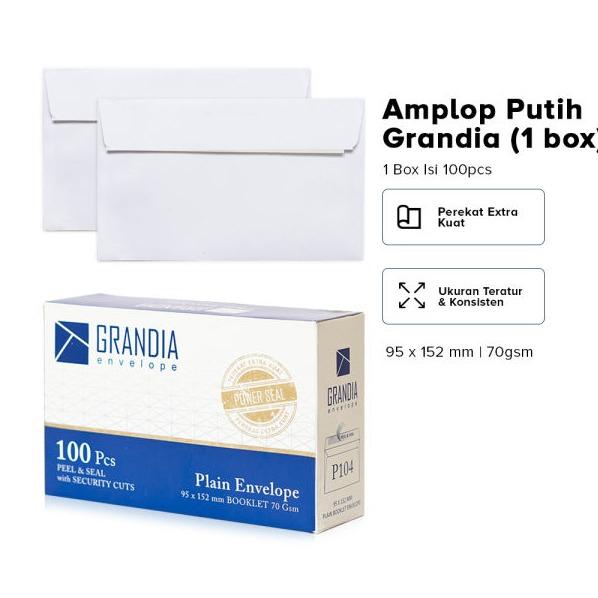 Amplop Putih Grandia 104100 lembarDilengkapi lem perekat, cocok untuk undangan, dokumen, atau angpau Lebaran.