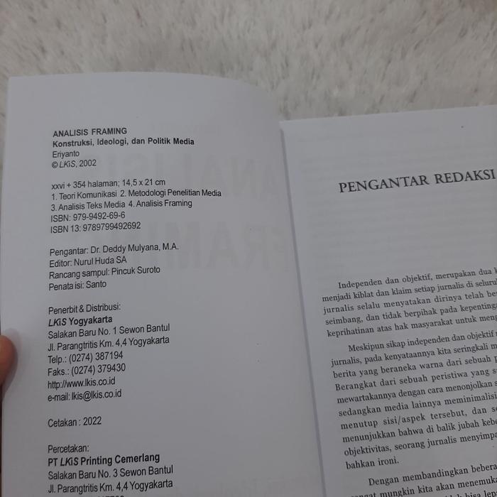 Buku ini merupakan karya fundamental Eriyanto yang mengupas tuntas metode analisis framing untuk membedah bagaimana media membentuk realitas. Lebih dari sekadar teknik analisis, buku ini mengajak pembaca untuk menyelami bagaimana ideologi dan kepentingan politik tersembunyi di balik pemberitaan media. Sebagai panduan komprehensif, buku ini sangat penting bagi mahasiswa ilmu komunikasi, jurnalis, peneliti media, dan siapa saja yang ingin memahami kekuatan di balik setiap berita yang kita konsumsi sehari-hari.