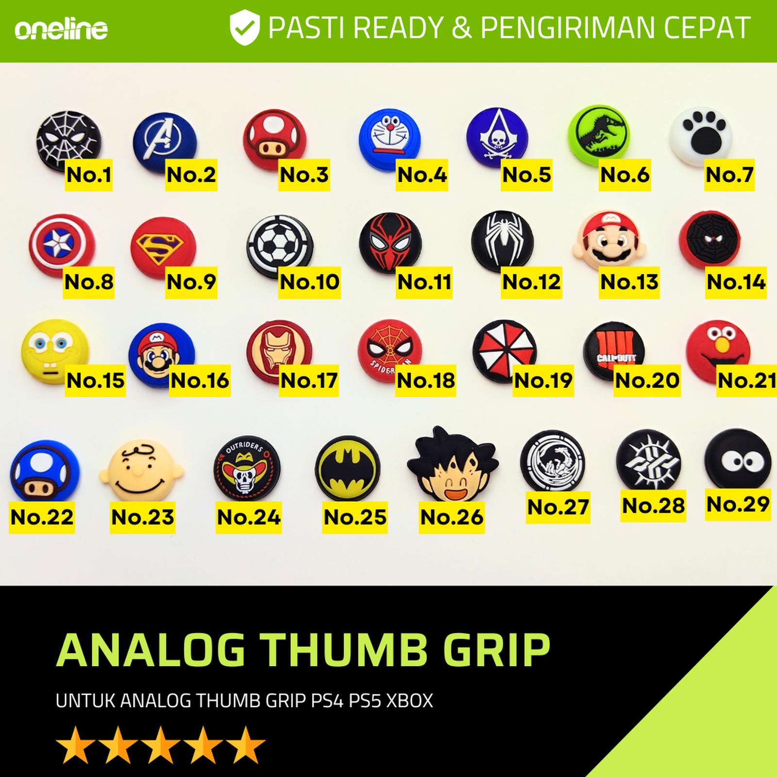Thumb Grip: Aksesori tambahan yang dipasang pada bagian atas stick analog controller. Fungsinya untuk memberikan permukaan yang lebih luas, nyaman, dan bertekstur untuk ibu jari, sehingga meningkatkan traksi dan kontrol selama bermain game.
