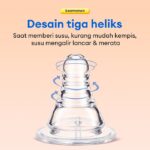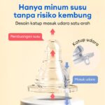 • BPA Free: Tidak mengandung Bisphenol-A (BPA), senyawa kimia yang berpotensi mengganggu kesehatan dan perkembangan bayi.