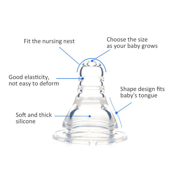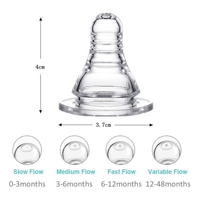 Terbuat dari material silikon BPA-Free yang lembut, aman, dan tahan lama. Puting silikon transparan ini memudahkan Anda untuk memantau kebersihannya. Dengan tinggi 4cm, dot ini dirancang untuk memberikan aliran susu yang optimal dan mencegah kolik.