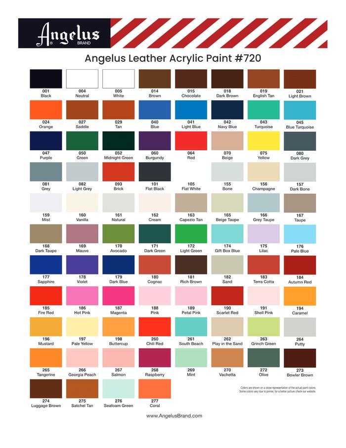 Angelus Acrylic Leather Paint adalah cat akrilik khusus untuk bahan kulit dengan kualitas premium. Fleksibel, tahan lama, dan cepat kering, cocok untuk berbagai produk seperti sepatu, tas, dompet, jaket, topi, hingga sarung tangan. Tidak hanya kulit, cat ini juga bisa diaplikasikan pada canvas, kain, rajut, karet, plastik, dan patent leather.