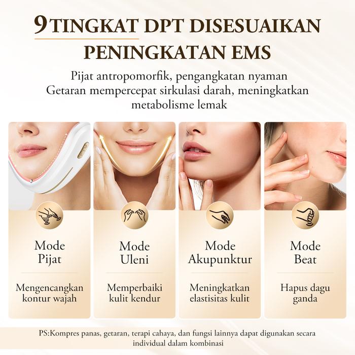 | 4 Teknik EMS | Pijat, Menguleni, Akupunktur, dan Berdebar untuk mensimulasikan teknik pijat profesional guna mengencangkan dan mengangkat kontur wajah. |
