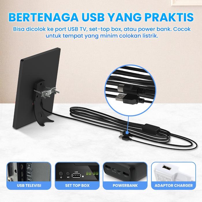 - Kompatibel penuh dengan frekuensi siaran TV digital Indonesia.