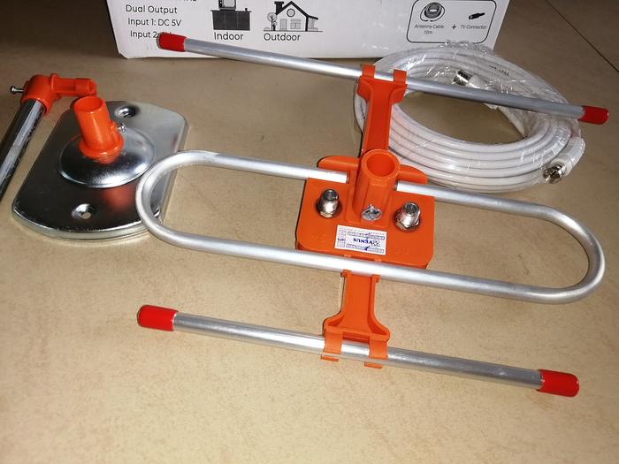 • Dual Output: Satu antena untuk dua televisi sekaligus.