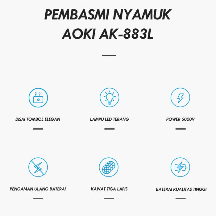 - Menggunakan: Tekan switch untuk mengaktifkan. Arahkan raket ke nyamuk dan sentuh dengan jaring untuk membasminya.