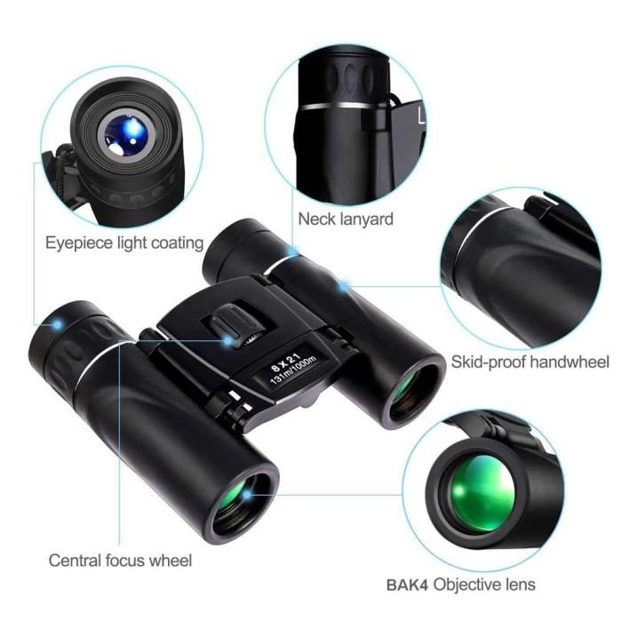 Dilengkapi dengan lensa kaca optical BAK4, teropong ini menjamin kejernihan gambar dan ketajaman visual yang superior, bahkan dalam kondisi pencahayaan rendah. Dengan kemampuan pembesaran hingga 8x, Anda dapat mengamati objek sejauh 1000 meter dengan detail yang mencengangkan. Desainnya yang dapat dilipat membuatnya sangat portabel, ideal untuk dibawa dalam perjalanan hiking, birdwatching, atau menonton konser.