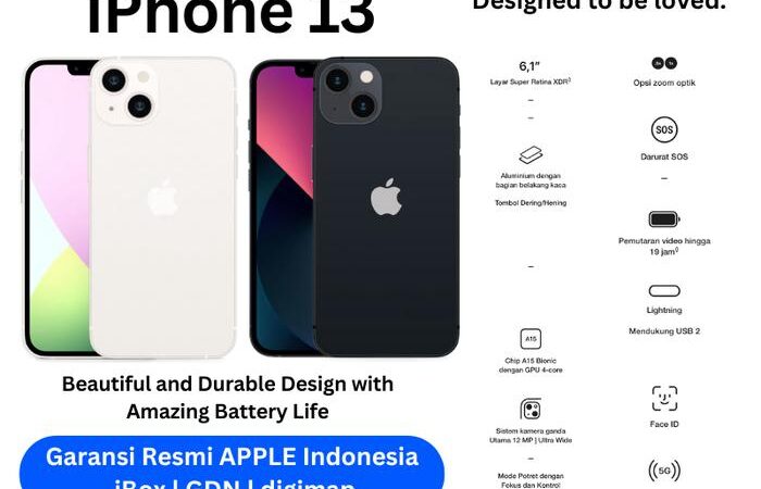 - A15 Bionic: Chip sistem di iPhone 13 yang menangani semua pemrosesan, dikenal sangat cepat dan efisien dalam mengolah tugas, grafis, dan pembelajaran mesin.