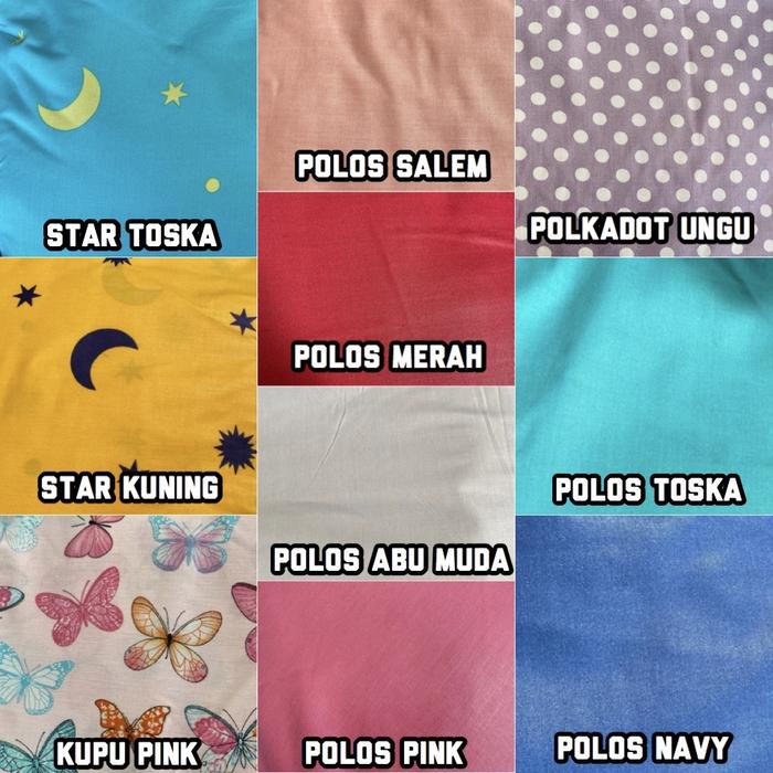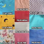 | Stok Tersedia | Polos navy, polos salem, polos pink, polos toska, segitiga biru, love peach, teddy pink, star abu, doraemon abu |