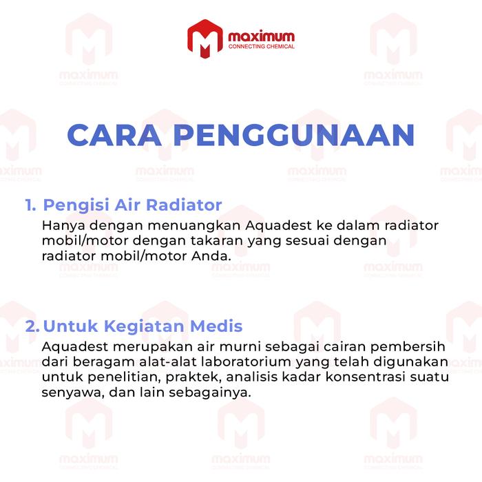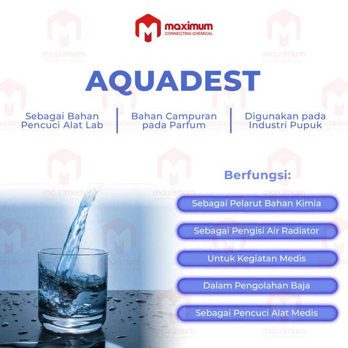 Dapatkan Aquadest (Aqua Destilata) berkualitas tinggi dalam kemasan praktis 1000 ml. Air ini merupakan hasil dari proses destilasi atau penyulingan satu kali, menjadikannya air murni yang bebas dari mineral dan kontaminan. Sangat cocok untuk berbagai kebutuhan seperti pengisian aki mobil, radiator, percobaan laboratorium, alat kesehatan, dan kebutuhan industri rumah tangga lainnya.