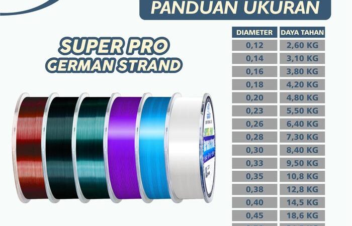 Lengkapi gear memancing Anda dengan senar yang dipercaya oleh para profesional. Tersedia berbagai ukuran diameter untuk menargetkan berbagai jenis ikan, dari yang kecil hingga yang besar.