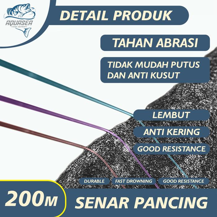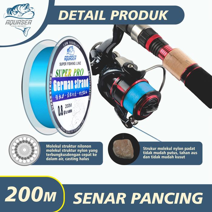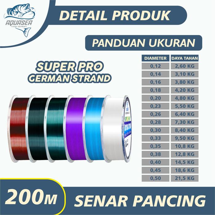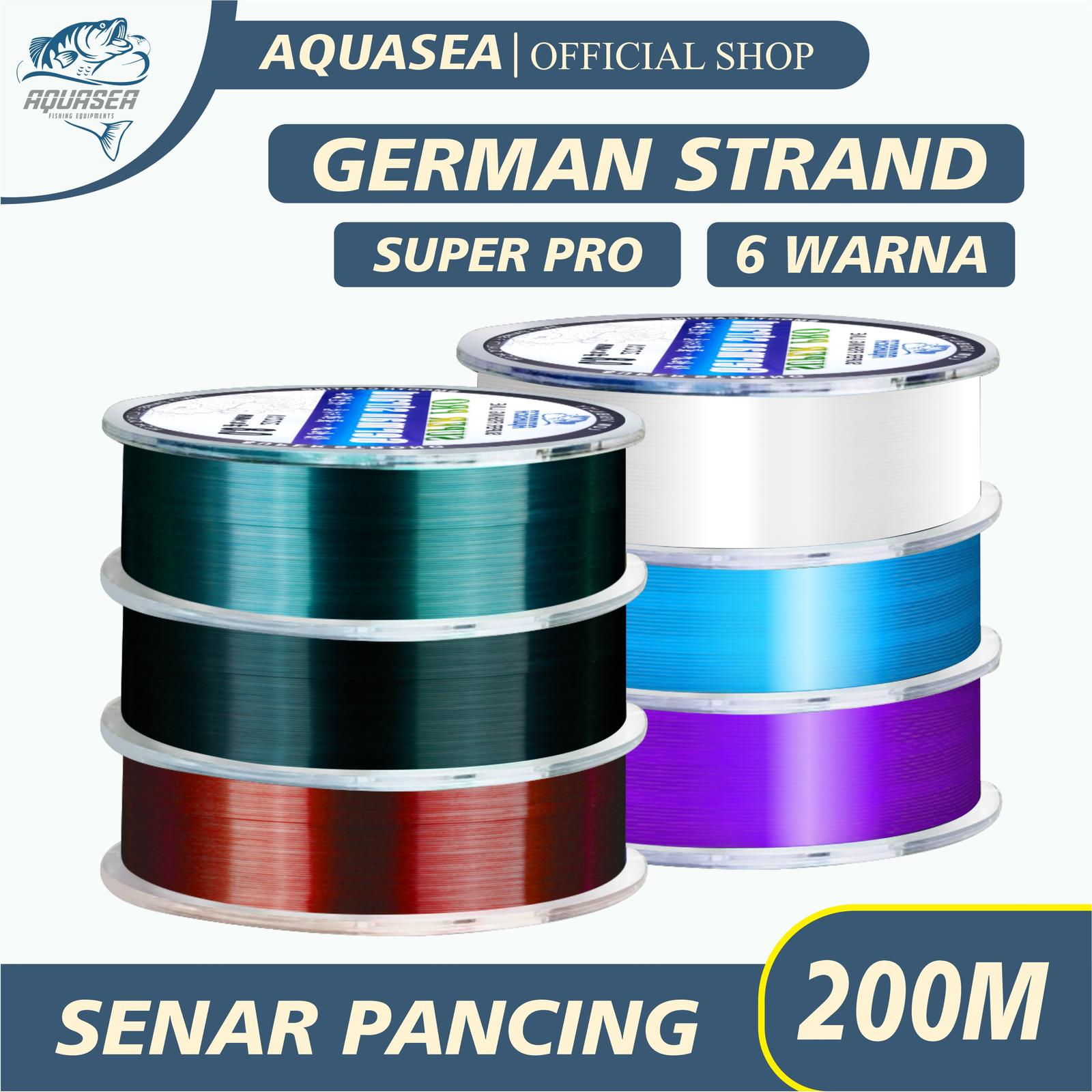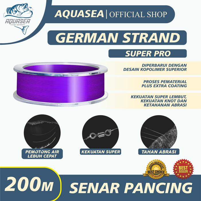Temukan senar pancing andalan Anda: AQUASEA Tali Pancing Germany Strand Pro 200m. Senar premium ini dirancang dengan teknologi Jerman untuk performa tangguh di segala kondisi. Keunggulannya tidak diragukan lagi dengan daya tarik yang kuat, permukaan yang halus dan tahan aus, serta kemampuan memotong air dengan cepat untuk casting yang lebih jauh. Desainnya yang nyaris tak terlihat di dalam air (invisible) tidak akan menakuti ikan, sehingga meningkatkan peluang Anda untuk mendapatkan strike.