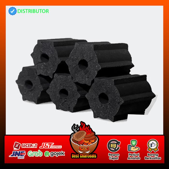 | Arang Briket Hexagonal | – Bentuk hexagonal tahan lama, panas stabil, ramah lingkungan | 1 kg = 7-12 pcs (250 gr = 2-3 pcs) |