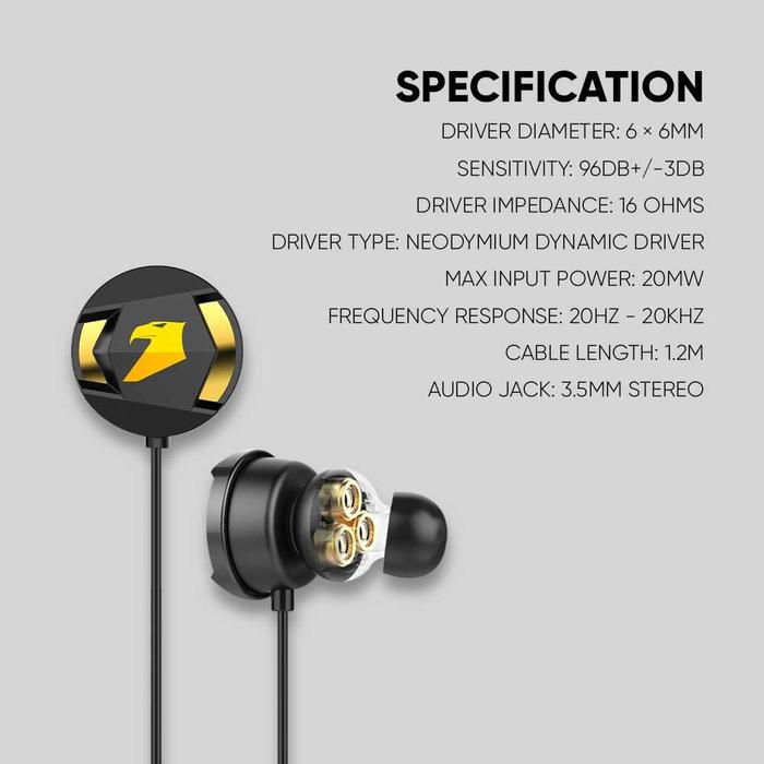 - Triple Neodymium Driver: Suara berkualitas tinggi dengan reproduksi bass yang powerful dan detail audio yang presisi.