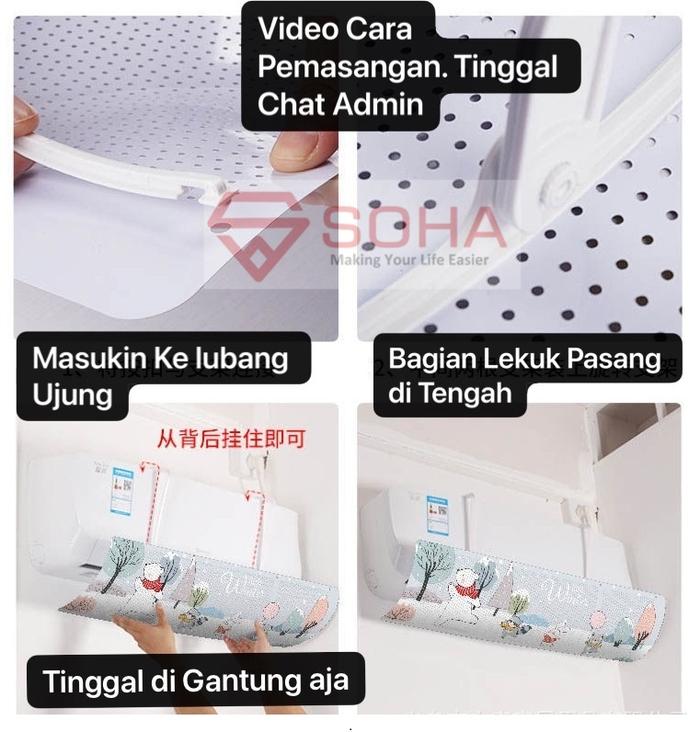 Hadir sebagai solusi cerdas untuk mengarahkan hembusan udara AC, sekaligus dekorasi estetik untuk dinding rumah Anda. Tersedia dalam berbagai motif unik yang dapat disesuaikan dengan dekorasi ruangan Anda. Pemasangannya sangat mudah dan praktis, cukup digantungkan pada unit AC tanpa memerlukan alat khusus. Produk ini kompatibel untuk semua jenis, merek, dan tipe AC rumah tangga.