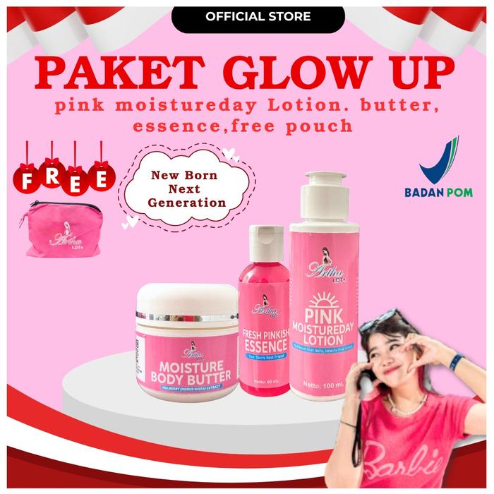 ✔ Paket Hemat: Pink Moisturday Lotion + Body Butter + Essence + Gratis Pouch