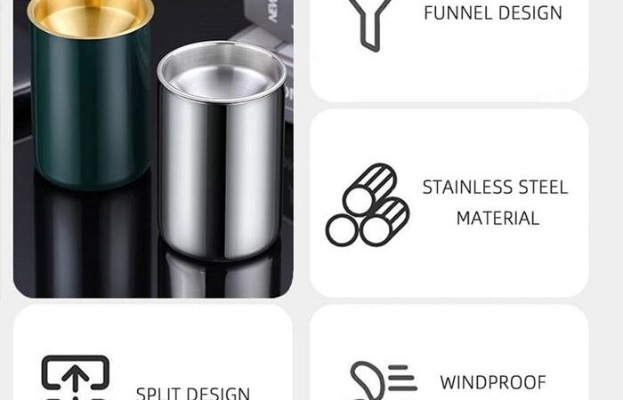 Anti Angin Corong: Desain corong dengan penutup dan seal karet yang dirancang khusus untuk menahan tiupan angin, sehingga abu dan puntung rokok di dalamnya tidak beterbangan keluar.