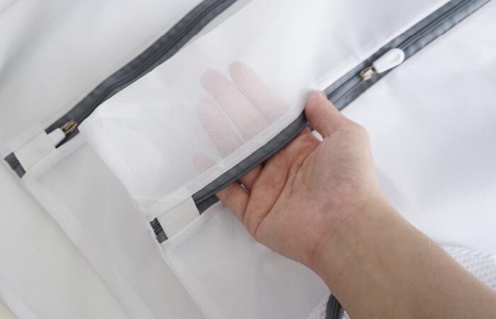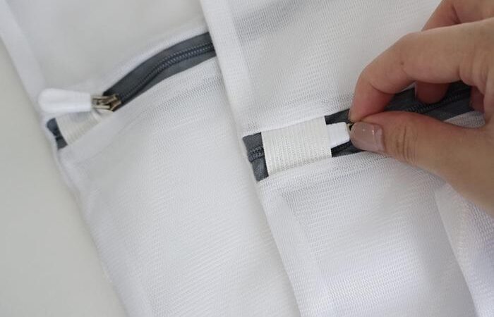 Dibuat dari bahan polyester berkualitas tinggi (70 gsm) yang halus dan memiliki pori-pori kecil untuk sirkulasi air yang lancar tanpa merusak kain. Dilengkapi dengan retsleting yang kokoh dan memiliki tempat penyimpanan khusus agar tidak menggores pakaian lain saat dicuci.
